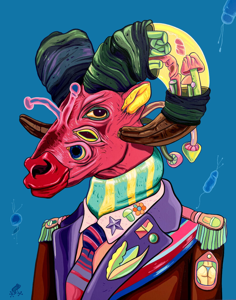 «Jardines Animales» fusiona fauna y flora en un universo surreal y vibrante, donde los animales se transforman en seres híbridos que habitan entornos psicodélicos. La serie explora la relación entre el ser humano y la naturaleza, distorsionando las figuras para cuestionar nuestra percepción de la vida y el impacto de la intervención humana. A través de colores intensos y formas fluidas, cada obra celebra la biodiversidad mientras invita a reflexionar sobre la fragilidad y resistencia de la vida en un mundo alterado.