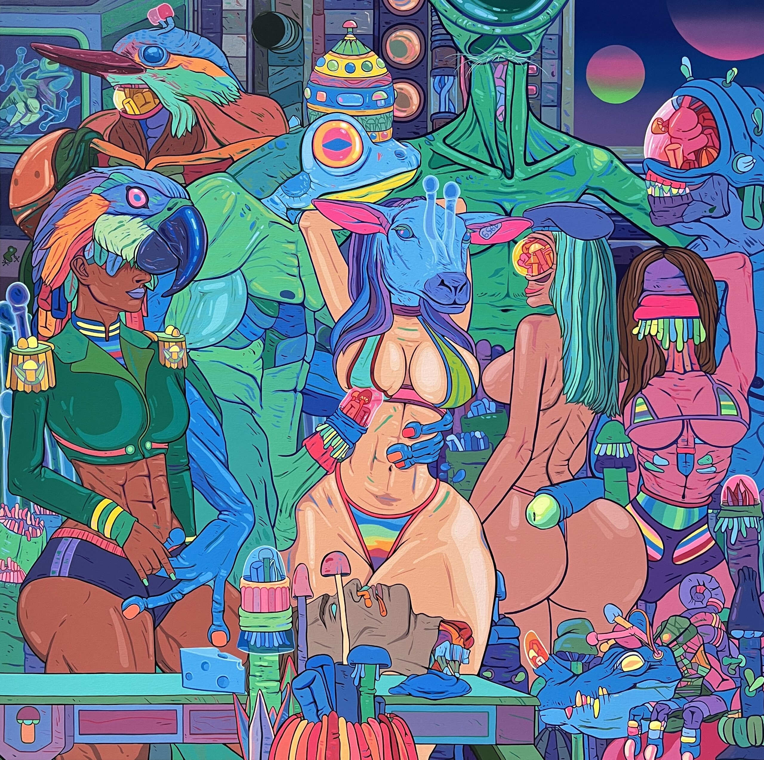 Las obras de «Eróticass» son un testimonio de la capacidad de Frank Arias para fusionar lo clásico y lo contemporáneo, lo abstracto y lo figurativo, creando un diálogo visual que trasciende las barreras convencionales del arte. La serie no solo destaca su dominio técnico, sino que también revela la profundidad de su imaginación. Cada pintura es como un rompecabezas visual, donde los elementos se entrelazan de formas inesperadas, invitando a los observadores a descubrir nuevas capas de significado con cada mirada.
